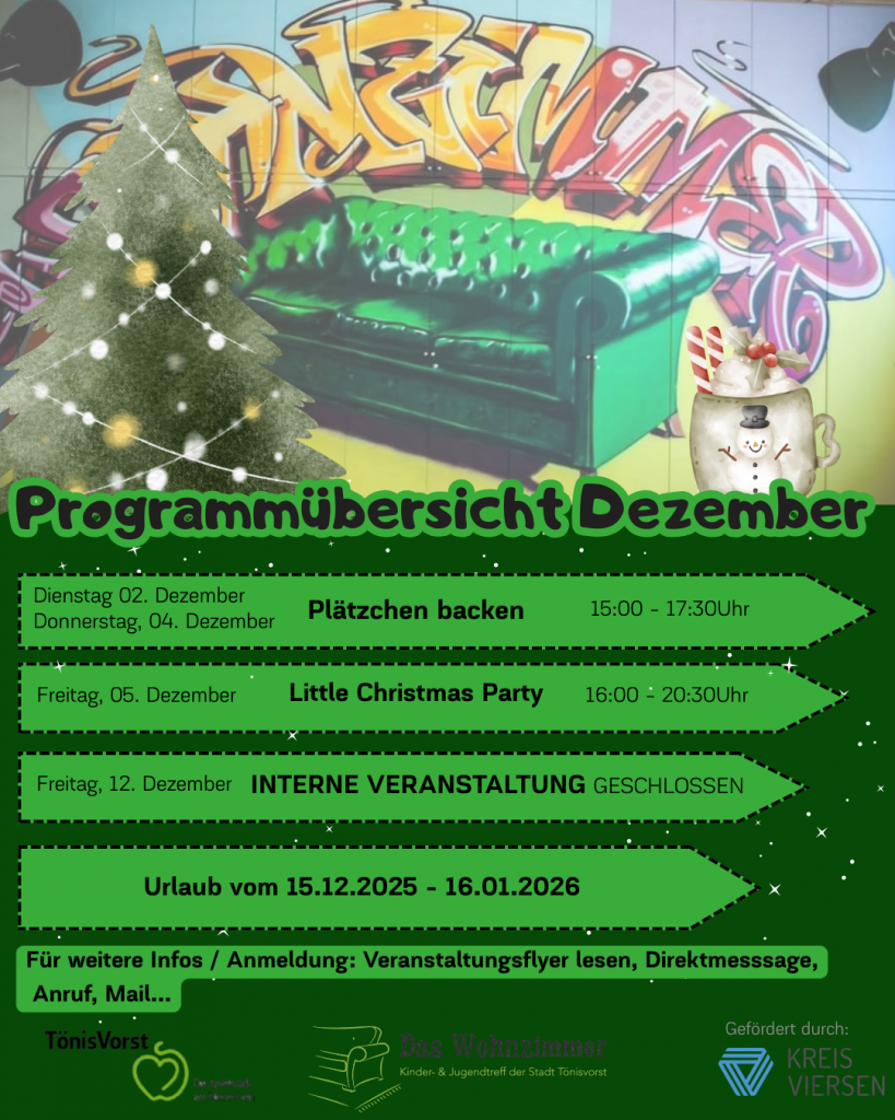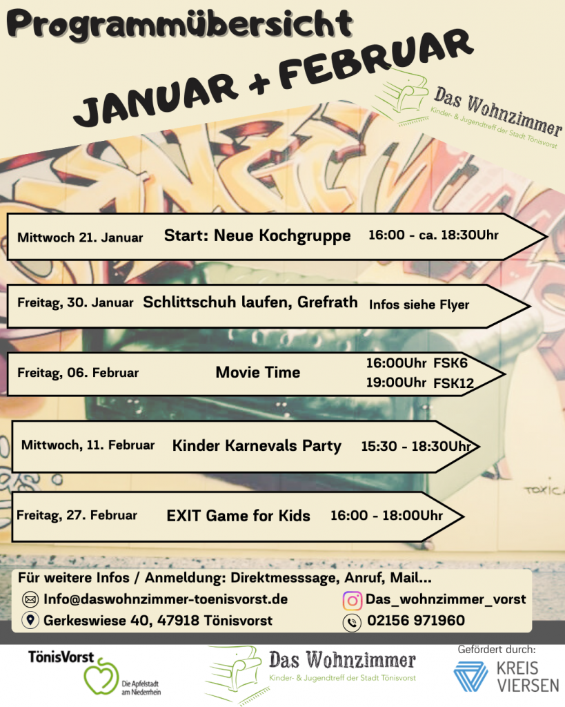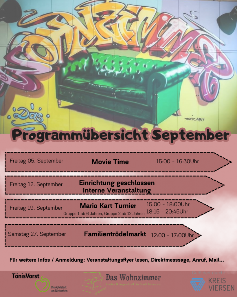 Der offene Kinder- und Jugendtreff „Das Wohnzimmer“ ist eine städtische und öffentliche Freizeiteinrichtung für Kinder und Jugendliche im Alter von 6 – 27 Jahren. „Das Wohnzimmer“ ist ein Ort der Begegnung und Kommunikation. Wir bieten ein vielfältiges Angebotsspektrum an, in dem Kinder und Jugendliche ihre Freizeit sinnvoll nutzen können. Das Angebot orientiert sich an der aktuellen Lebenslage, den Bedürfnissen und Interessen der Besucher(innen). Begleitet und unterstützt wird unser Angebot von pädagogischem Fachpersonal.